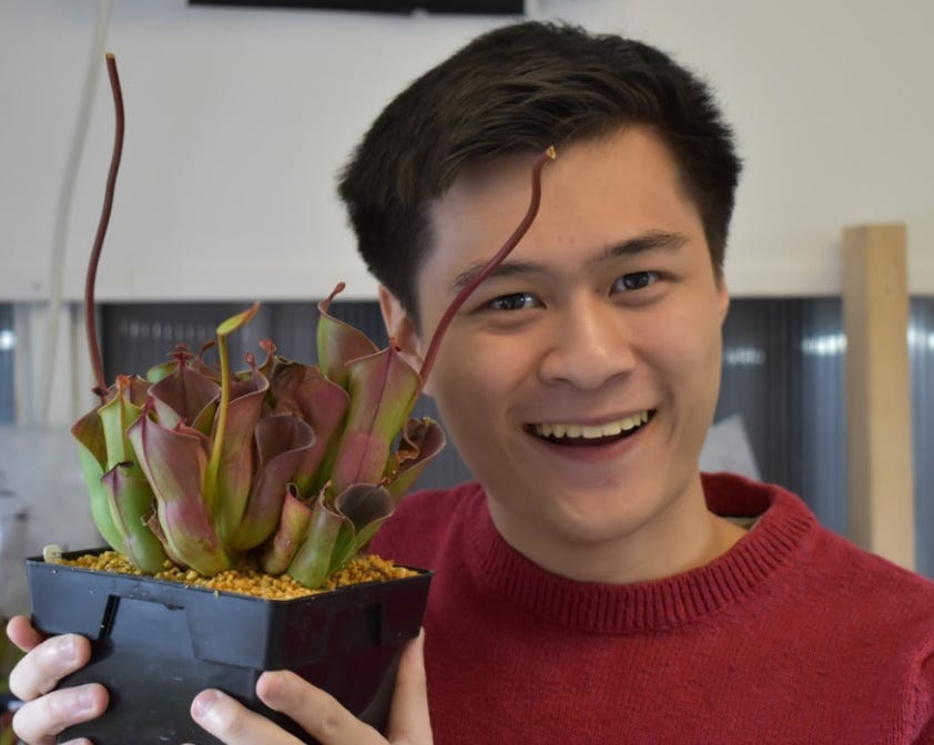 Alvin Liu has been growing carnivorous plants since he was six years old and can directly attribute his interest in CPs to David Attenborough’s The Private Life of Plants. His journey originally started with a Sarracenia hybrid (which is no longer with us, unfortunately), but he did not start to seriously collect plants until 2013 or so. Although he was initially interested in Nepenthes, his primary focus is now Sarracenia, of which he collects both species and hybrids; S. flava, S. leucophylla, and S. x moorei are some of his favorites. His collection consists mostly of Drosera, Sarracenia, and Nepenthes, with a relatively even split between temperate and tropical plants. He hopes that you will find this site useful, interesting, and entertaining!